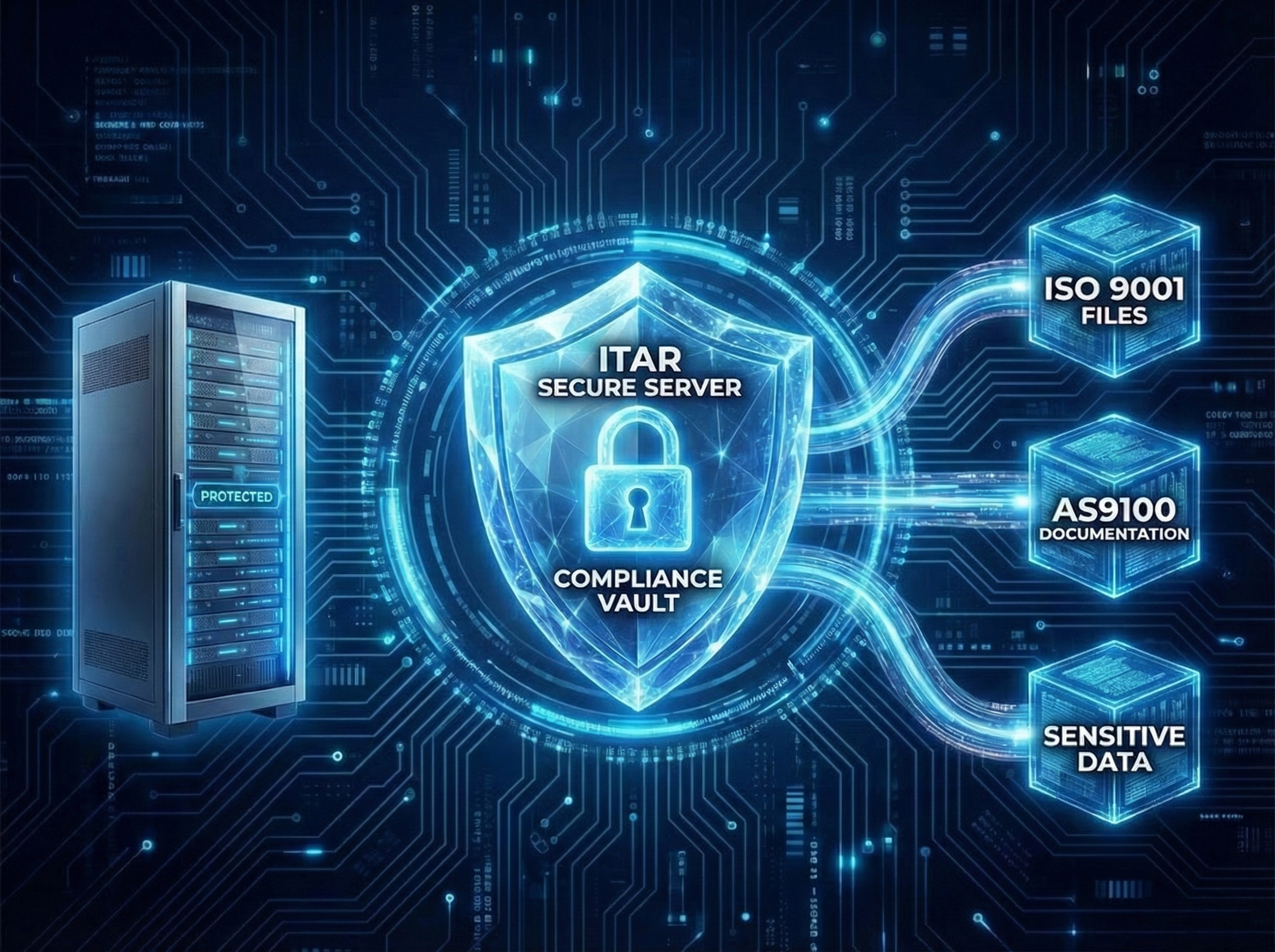 Secure your sensitive data in a segregated environment built to automatically meet strict ITAR and cyber-security regulations. Our defense-grade infrastructure offers restricted server partitions for technical data and centralized AS9100 documentation, ensuring your shop remains CMMC and NIST-ready for any audit.